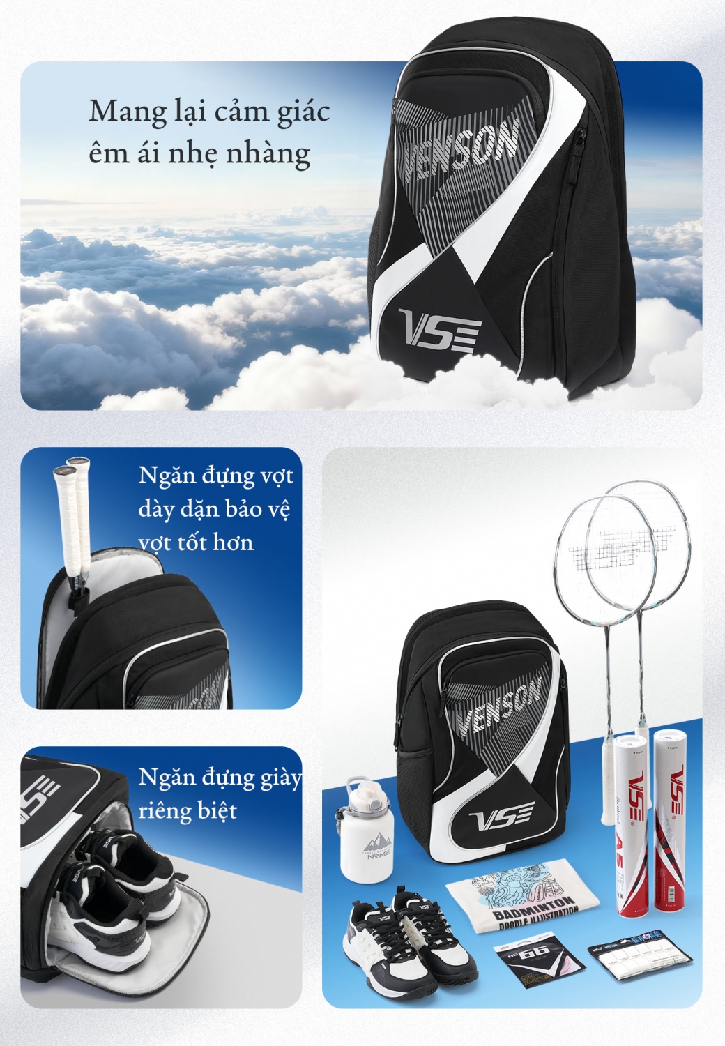 Xem thêm sản phẩm: Balo cầu lông VS VB2510G