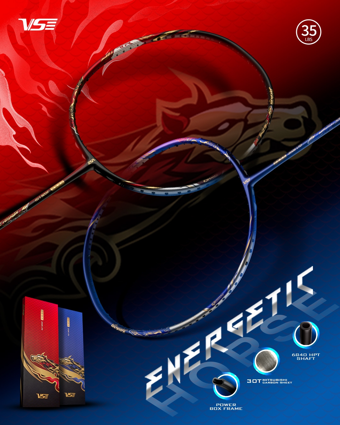 Set Vợt cầu lông VS Energetic Long Mã là set vợt cầu lông được định hướng cho lối chơi tấn công mạnh mẽ, đề cao tốc độ ra cầu và khả năng dứt điểm. Với thiết kế nổi bật cùng 2 màu ấn tượng là Đỏ và Xanh, cây vợt mang tinh thần bùng nổ và quyết liệt ngay từ cái nhìn đầu tiên.