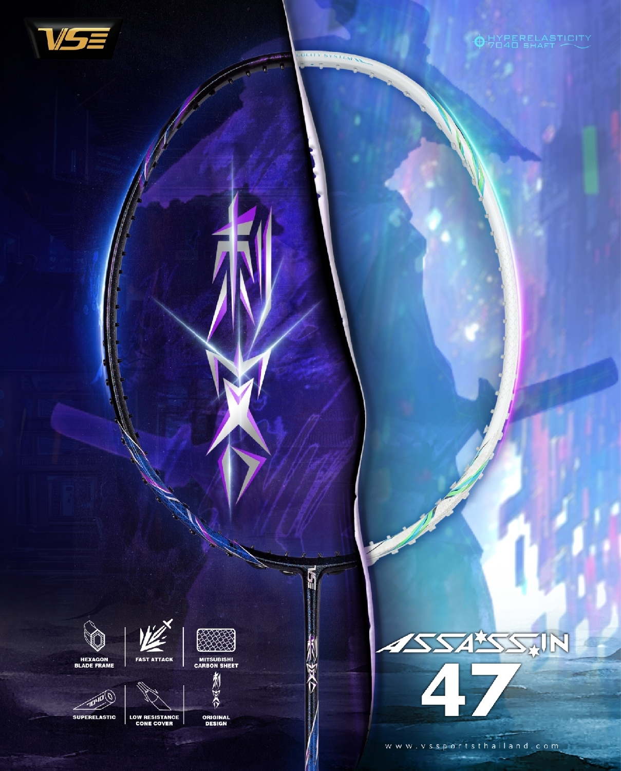 Vợt cầu lông VS Assassin 47 được định hướng cho lối đánh tấn công tốc độ, thiên về phản tạt nhanh, điều cầu linh hoạt và những pha đập cầu dứt khoát mang tính bất ngờ. Cây vợt đặc biệt phát huy hiệu quả trong các tình huống chớp thời cơ, ghi điểm nhanh trước đối thủ.