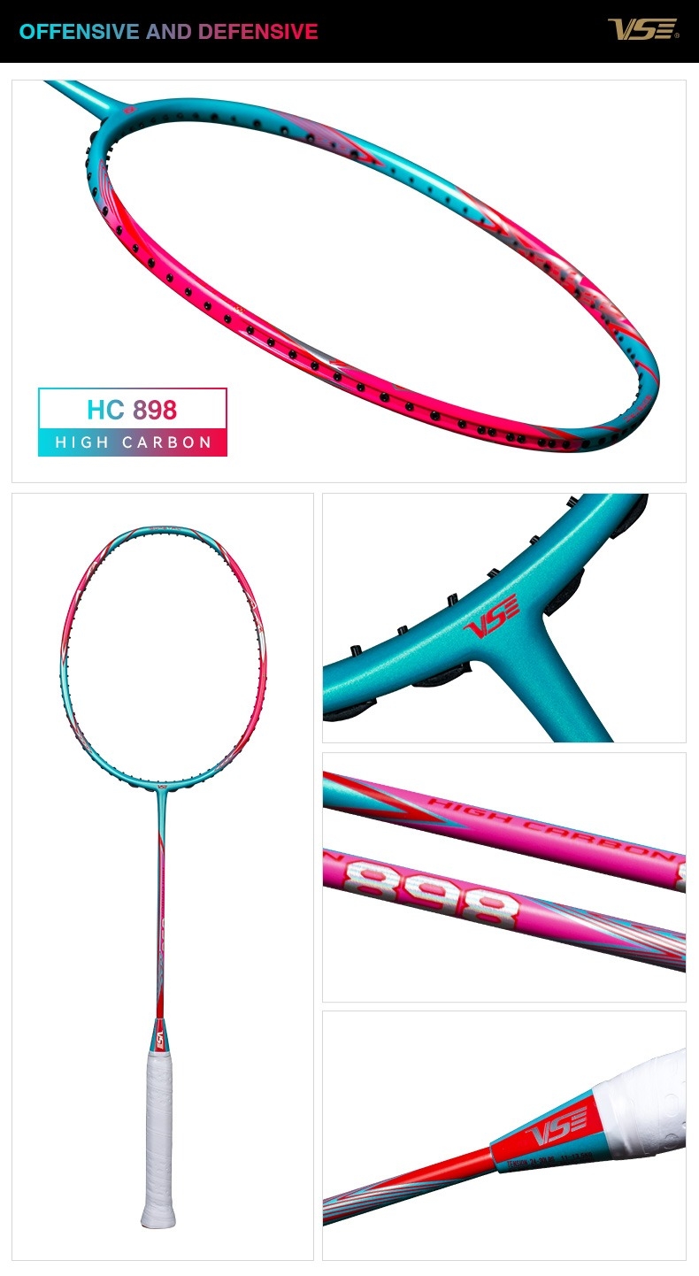 Vợt cầu lông VS High Carbon HC898 được thương hiệu VS nghiên cứu và phát triển nhằm phục vụ nhu cầu tập luyện và thi đấu với cường độ cao. Sản phẩm hướng đến những người chơi mong muốn một cây vợt có trọng lượng nhẹ, độ ổn định cao và hiệu suất sử dụng lâu dài.